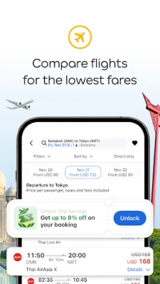 Agoda ce abokiyar tafiyarka ta farko, mai sauya mafarkin tafiya zuwa gaskiya. Ko kana neman zirga-zirga a cikin gida ko kuma shakatawa a nahiyoyi daban-daban, Agoda tana ba ka damar samun tikitin jirgi ba tare da wata wahala ba. Tare da zabin kamfanonin jiragen sama sama da 200 a fadin duniya, da injin bincikenta mai fasaha wanda ke kwatanta farashi nan take, Agoda na tabbatar maka da cewa za ka sami mafi kyawun ciniki kai tsaye, yana bai wa kowane matafiyi damar kaiwa ga inda yake so cikin sauki.