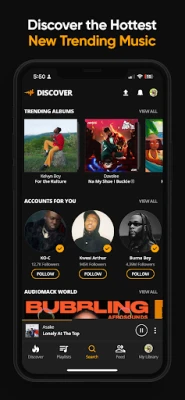 Shin kana neman wani dandali da zai buɗe maka kofar shiga duniyar waƙoƙi marasa iyaka? Audiomack shine mafitar ka ta ƙarshe! Wannan manhaja ta musamman tana gabatar maka da sababbin waƙoƙi da waɗanda ke tashe daga manyan nau'o'i daban-daban kamar Hip-Hop, Rap, R&B, EDM, Afropop, da Reggae. Ka kasance a sahun gaba wajen gano abin da ke faruwa a duniyar kiɗa, kai tsaye a tafin hannun ka. Ko kana son jin daɗin sababbin hits kai tsaye ko adana su don sauraro a baya, Audiomack yana da duk abin da kake buƙata.