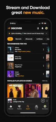 Tare da Audiomack, jin daɗin waƙoƙin ka baya buƙatar dogaro da intanet. Manhajar tana ba ka damar adana waƙoƙi da albam ɗin da kake so don sauraro a kowane lokaci, ko da ba ka da data. Ka yi ban kwana da damuwar cikon data, kuma ka nutsar da kanka cikin duniyar kiɗa mara iyaka. Ba wai kawai waƙoƙi daga dandali ba, Audiomack kuma yana iya kunna dukkan tarin waƙoƙin ka na cikin waya, kamar MP3, WAV, M4A, da AAC, kai tsaye daga manhajar. Akwai kuma sashin "Trending" na musamman wanda zai nuna maka waƙoƙi da albam ɗin da ke zafi a halin yanzu, domin ka kasance farkon waɗanda suka sani.