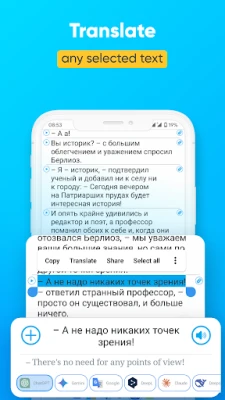 Tare da "Parallel Translation", za ka iya fassara kowace kalma ko jimla da taɓawa ɗaya kawai. Manhajar tana ba da cikakken goyon baya ga sabis ɗin fassara daban-daban kamar Google Translate, DeepL, Microsoft, Yandex, Reverso Context, Oxford Dictionaries, NLP Translation, Deep Translation, Papago, har ma da ChatGPT. Kawai ka danna dogon danna ko ka danna sau biyu a kowane sashi na rubutu, kuma nan da nan za a fassara shi ta hanyar sabis ɗin da ka zaɓa. Ka ce bankwana da matsalar canja-canja tsakanin manhajoji daban-daban ko kamus – "Parallel Translation" yana ba da mafita guda ɗaya ga duk bukatun fassarar ka.