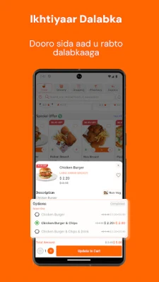 Caawiye.com shine kasuwar gida guda ɗaya don abinci, kayan abinci, magunguna da mahimman bukatun yau da kullun. Ana kawo su da sauri daga shagunan kusa. Bincika, yi oda, bi sawu kai tsaye, kuma ka yi hira da tallafi—duka a cikin Caawiye.com.