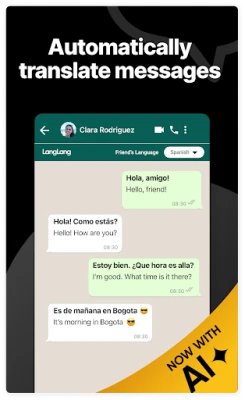 "Translator for WhatsApp" yana tallafawa fiye da harsuna ɗari, daga Sifen zuwa Sinanci, Hindi, Fotigal, Jafananci, da Rashanci, yana ba ka damar aika saƙonni cikin kowane yare ba tare da wata damuwa ba. Yana da mahimmanci ga masu tafiye-tafiye waɗanda ke son yin odar abinci ko shirya balaguro ba tare da wahala ba. Ga masu kasuwanci, yana ba su damar sayarwa da ba da tallafi ga abokan ciniki waɗanda ba sa magana yarensu. Har ila yau, ga waɗanda ke cikin manyan ƙungiyoyin duniya, yana sauƙaƙa bin tattaunawa tare da mutane da yawa lokaci guda, yana ba da damar shiga cikin al'ummomin duniya da kuma koyon sabbin harsuna ta hanyar aiwatarwa kai tsaye. Tare da "Translator for WhatsApp", LangLang ya yi ƙoƙari don inganta ƙwarewar sadarwarka a WhatsApp, yana cire duk wani shingen harshe don sadarwa mai sauƙi da inganci.
