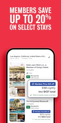 Hotels.com: Travel Booking yana taimaka maka samun da yin rajistar masaukin ka mai kyau. Ji daɗin farashin membobin 10% ko sama da haka. Shiga One Key don samun lada da OneKeyCash, kuma a yi ajiyar masauki daga zaɓuɓɓuka sama da 500,000 a duniya.
