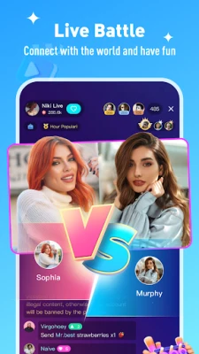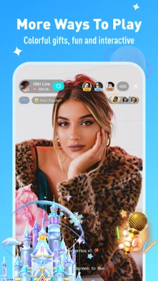 Niki Live ya ba ku damar nuna basirarku da kuma haskaka kamar tauraro. Ku loda gajerun bidiyo masu ban mamaki ko ku raba lokutan ku a "Moments" don jan hankalin magoya baya da ƙara shahararku. Yi amfani da tasiri masu salo, tacewa masu kyau, da kuma lambobi masu motsi irin su kunnuwan kyanwa ko zomo don ba wa rafinku kyan gani na musamman. Kuma don nuna godiyarku ga masu gabatarwa, Niki Live ya samar da kyaututtuka na musamman masu ban sha'awa, daga furanni masu daɗi zuwa motocin alfarma masu ƙyalli. Ku shiga cikin al'umma mai ɗorewa, ku ƙirƙiri kulob ɗinku na musamman, kuma ku ji daɗin abubuwan ban sha'awa na Niki Live da ake gabatarwa akai-akai, waɗanda zasu kawo muku sabbin hanyoyin nishaɗi marasa adadi.