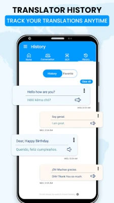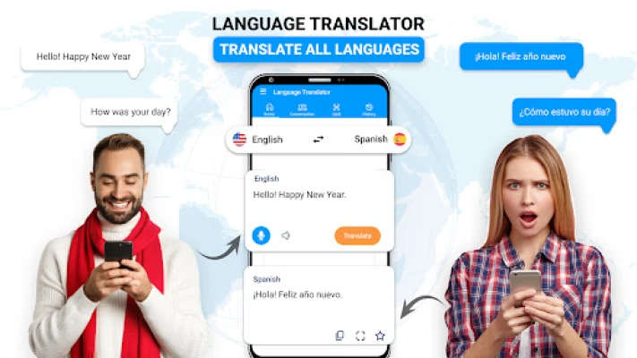 Wannan manhaja ta Language Translator tana da fasalulluka na musamman da aka tsara don biyan buƙatun fassarar ku daban-daban. Ta hanyar **Hoton Mai Fassara**, za ku iya juya menu na abinci, alamun hanya, ko takardu da ke gaban ku nan take ta hanyar ɗaga kyamararku kawai. Yana karantawa da fassara rubutun cikin sauri, yana ba ku damar fahimtar muhalli. Don tattaunawa ta fuska-da-fuska, **Fassarar Murya** yana ba ku damar yin magana da mazauna gida ko abokai ta hanyar riƙe gunkin murya da faɗin abin da kuke so. Har ila yau, **Mai Fassara Rubutu** yana taimaka muku wajen koyon sabbin kalmomi, fahimtar littattafai, ko jumla, yana sa koyon harshe ya zama mai sauƙi da jin daɗi. Yana goyan bayan manyan haɗin harsuna kamar Turanci zuwa Sifanishi, Larabci, Faransanci, Hindi, Urdu, Jamusanci, da kuma wasu da yawa.